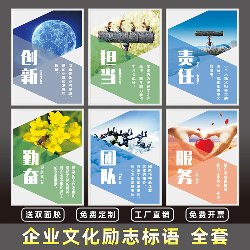 企业文化墙办公室墙面装饰画挂画工厂车间背景墙公司励志标语贴纸