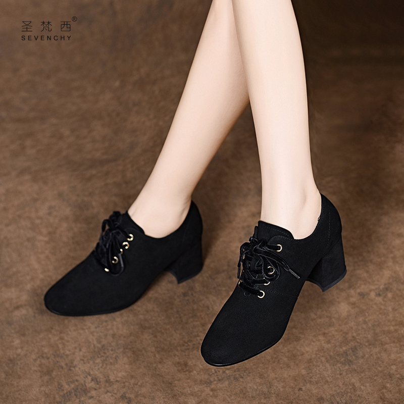 - 粗跟系带女鞋