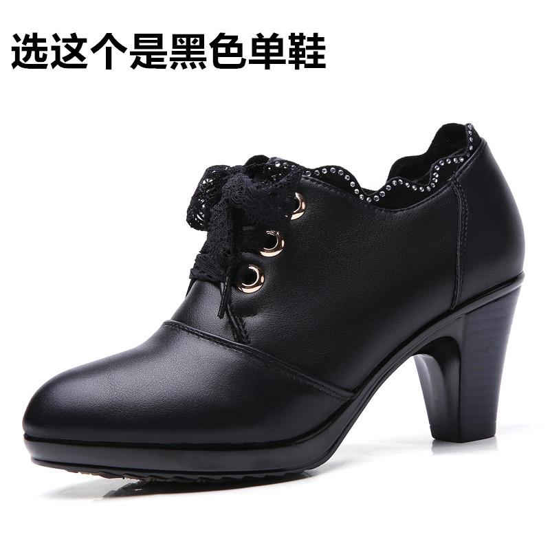 秋冬真皮粗跟女鞋高跟鞋深口单鞋女中跟女士皮鞋中年妈妈鞋防滑鞋