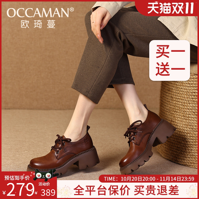 粗跟复古小皮鞋女2025年春季新款休闲女鞋高跟鞋厚底增高单鞋鞋子