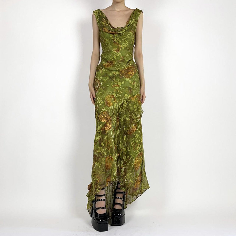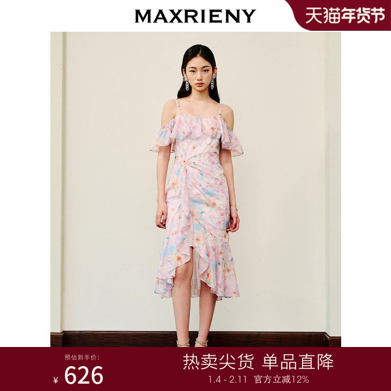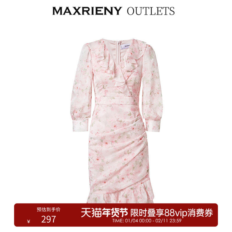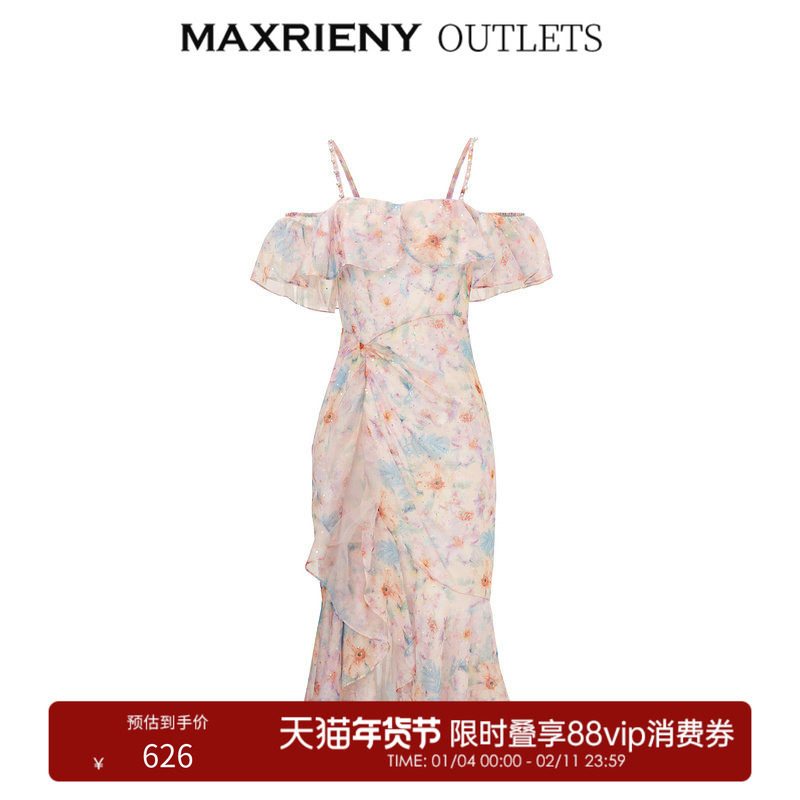 【奥莱】MAXRIENY桃花鱼尾连衣裙碎花连衣裙仙美郁金香裙子