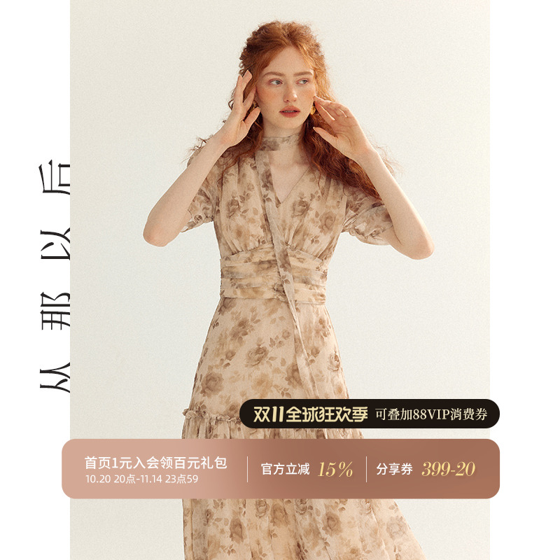 从那以后法式碎花裙茶歇长裙秋长袖裙子秋季高级感礼服连衣裙早秋