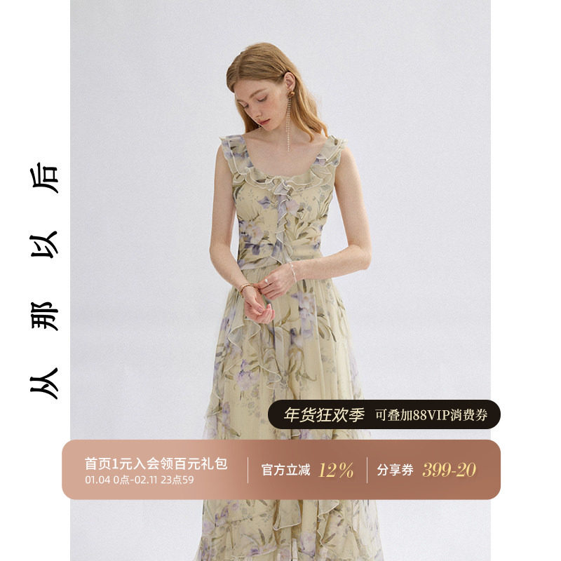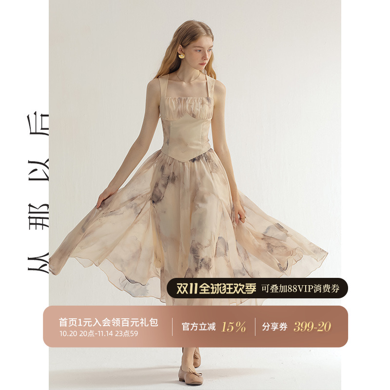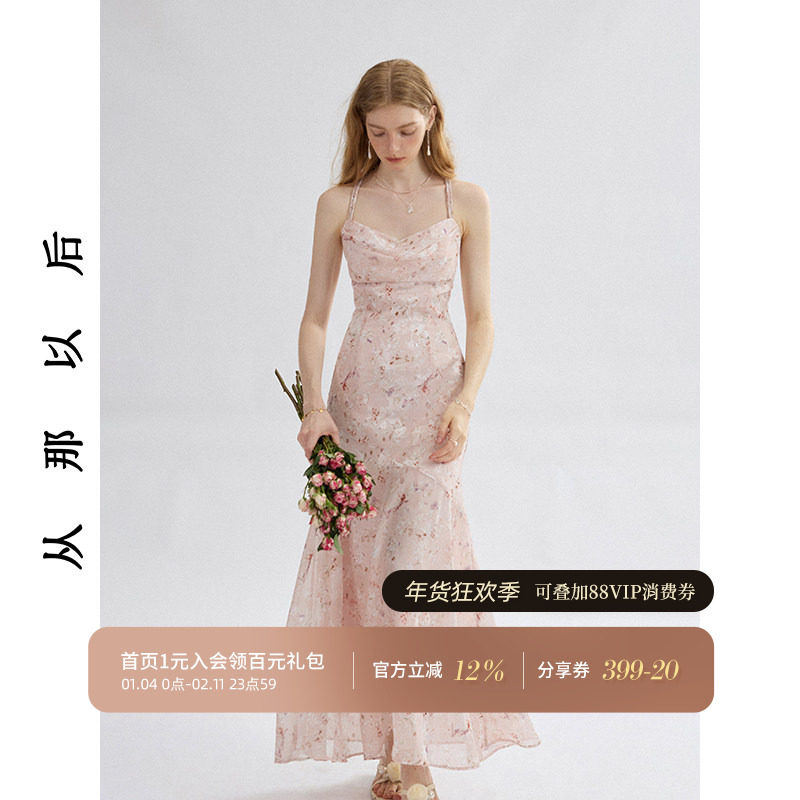 从那以后法式吊带裙海岛连衣裙碎花长裙礼服粉色小裙子度假穿搭女