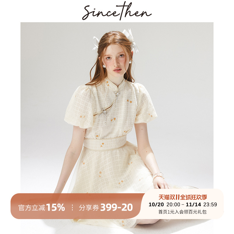 sincethen改良旗袍裙新中式连衣裙碎花裙子少女风短裙女夏季新款