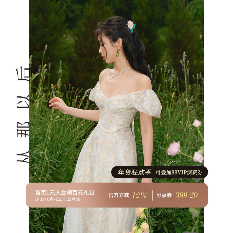 从那以后法式露背连衣裙碎花裙子吊带裙海边度假风长裙女夏季新款