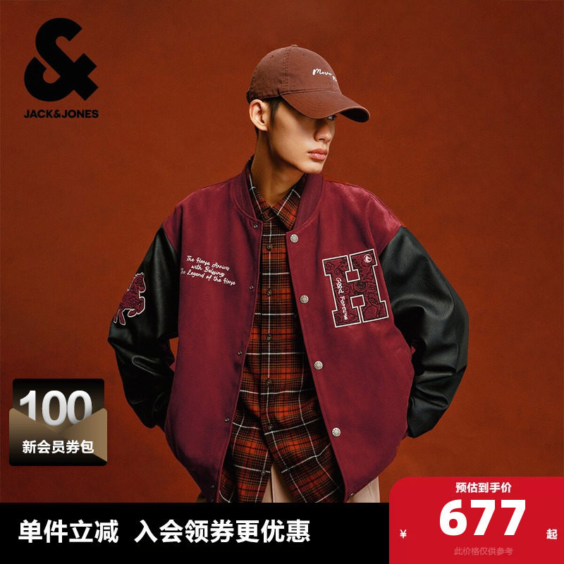 杰克琼斯男装夹克春秋季时尚宽松时尚字母印花做旧棒球领外套上衣
