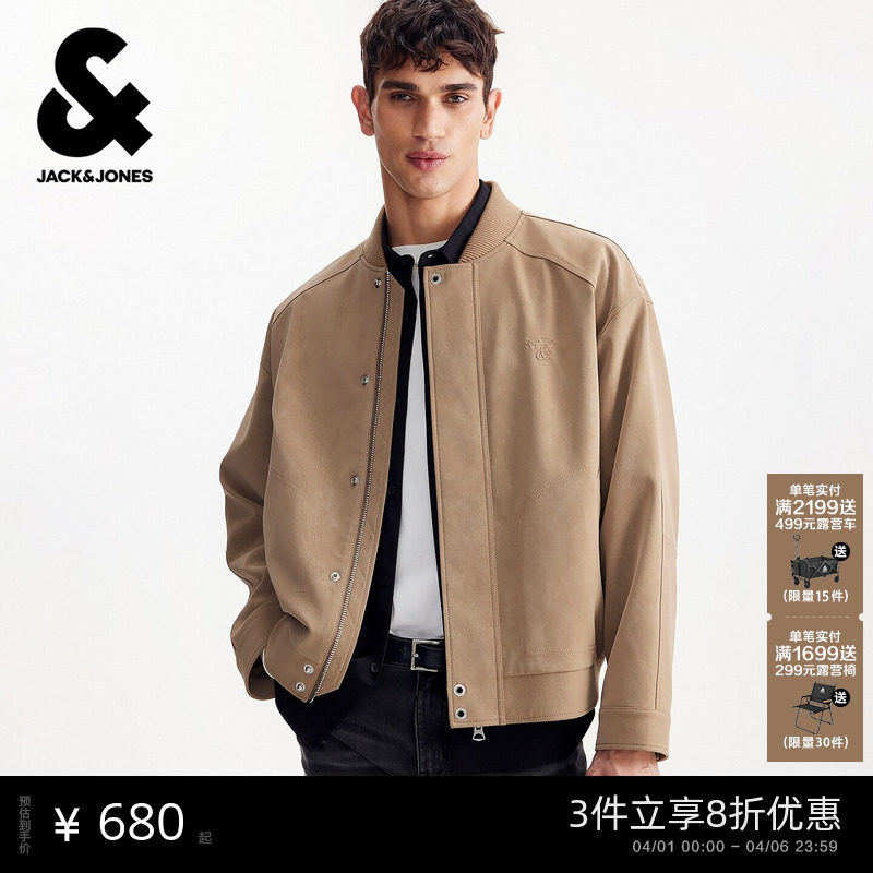 杰克琼斯2026年春季新款男装夹克宽松棒球领长袖时尚外套潮上衣