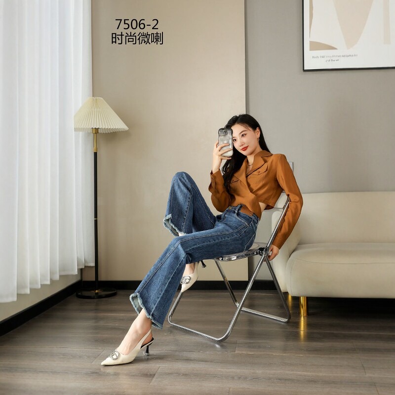 品牌女装女裤2026春季M7506专柜弹力腰修身时尚弹力喇叭牛仔裤