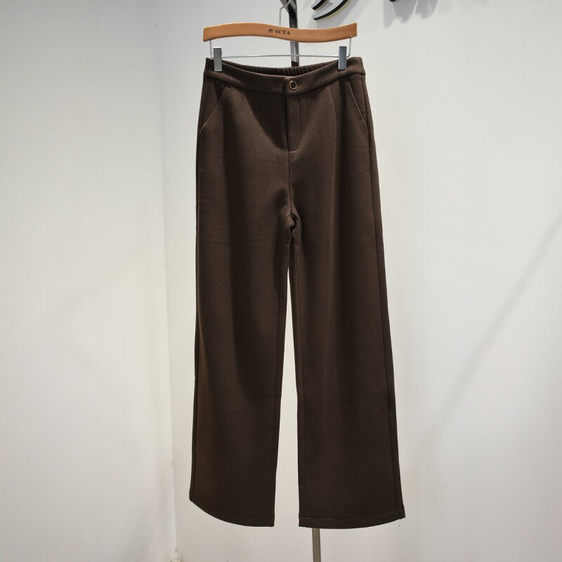时尚女裤2026春季新款8115专柜时尚舒适弹力腰拉绒加厚阔腿裤