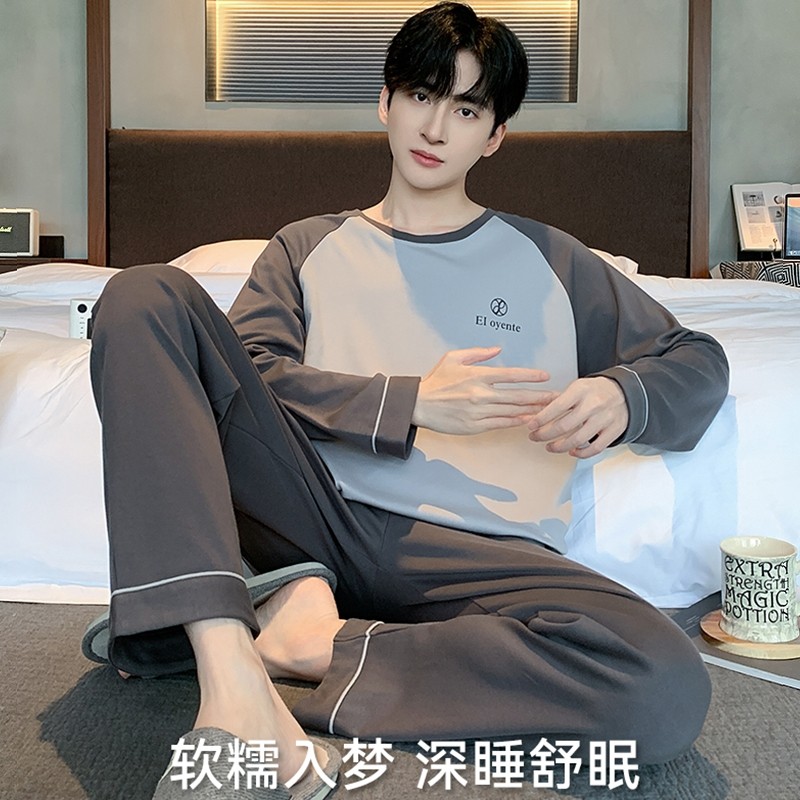 100%纯棉睡衣男春秋季长袖新款男士全棉大码学生家居服套装可外穿