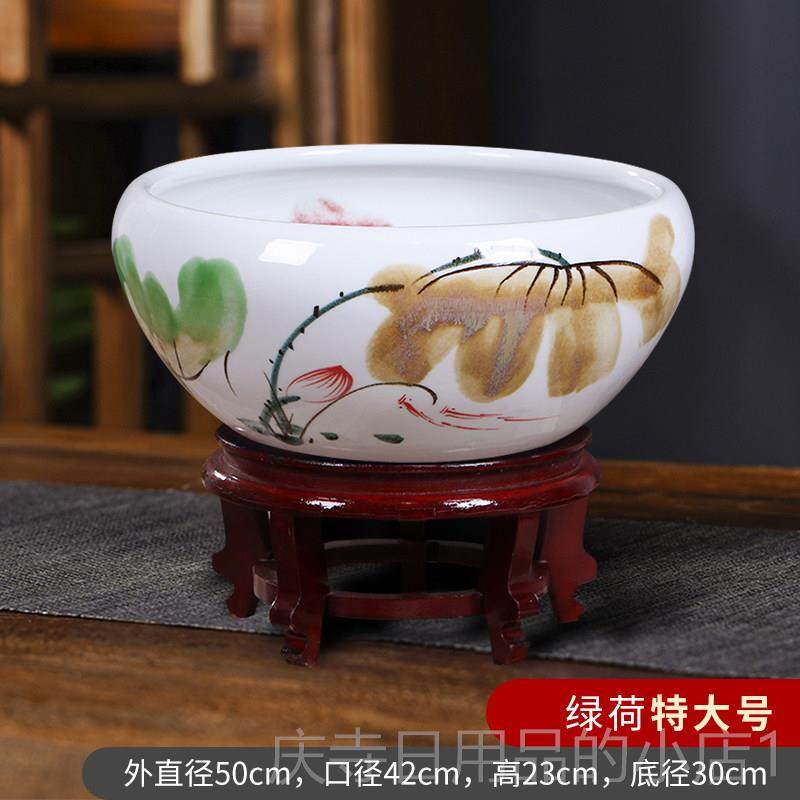 高档景德陶荷花鱼缸养鱼盆青花瓷瓷镇金鱼鱼缸盆乌龟缸睡家居创意