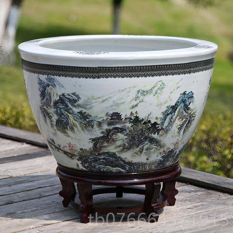 正品景德镇陶泉瓷缸大号养客鱼盆乌龟缸家用流水喷厅金鱼鱼缸造景