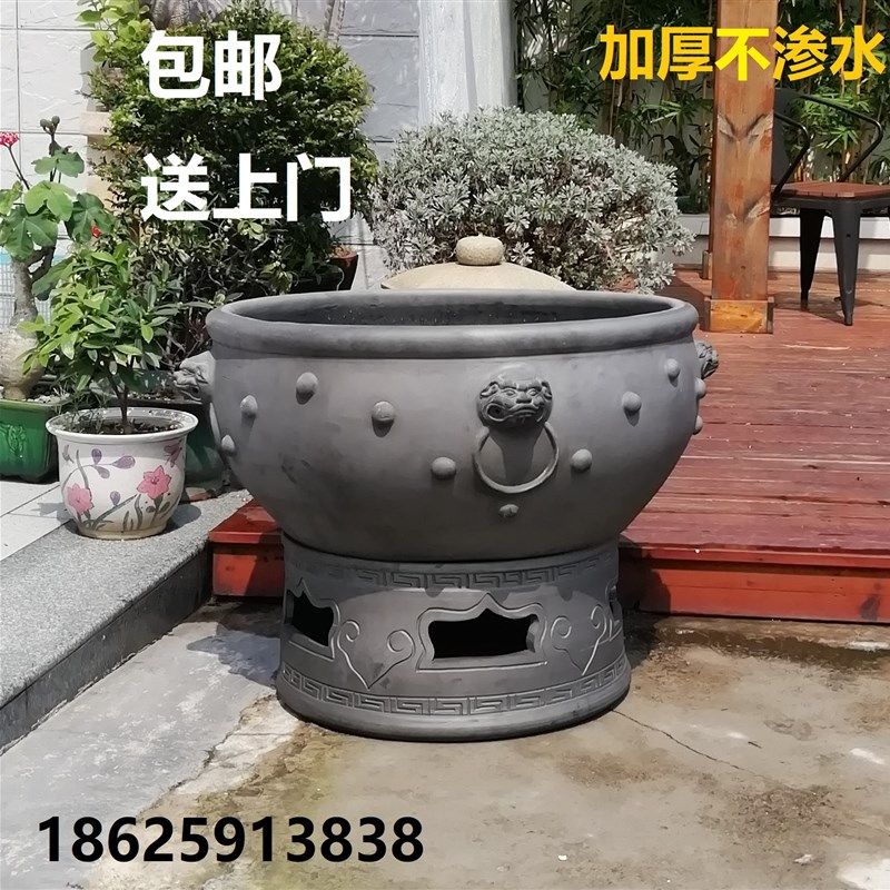老北京鱼盆客厅造景养金鱼鱼缸陶瓷泥盆瓦盆鱼缸荷花缸庭院特大号
