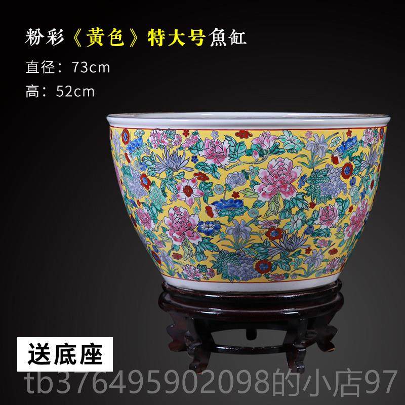 正品景德瓷镇花筒彩色龟陶鱼缸万金鱼鱼缸缸大水箱客厅装饰财富摆