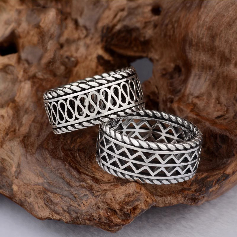 S925纯银手工锤纹戒指小众古法个性轻奢男指环冷淡风简约可调节潮