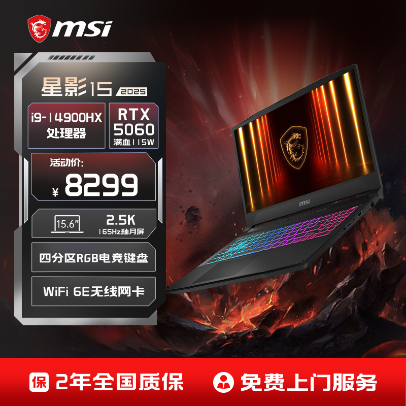 【政府补贴20%】MSI/微星星影15笔记本电脑i9-14900HX处理器RTX5060显卡游戏本15.6英寸学生笔记本电竞游戏本