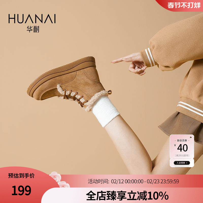 华耐高帮勃肯女鞋2025秋冬加绒加厚马丁靴羊羔毛雪地靴女厚底棉鞋