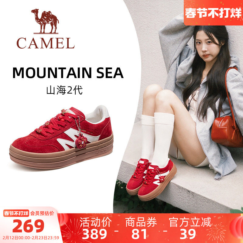 骆驼山海2代运动鞋德训鞋女鞋红色休闲鞋子板鞋秋冬女款新年礼物