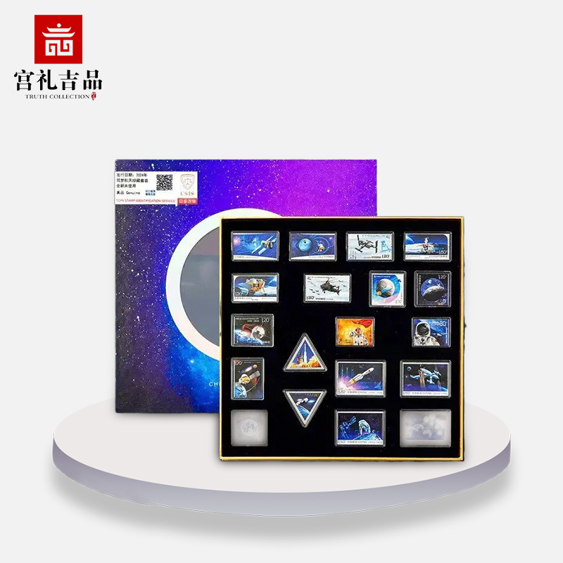 邮政审批筑梦航天荧光珍藏邮票冰箱贴纪念币中国航天文创礼盒抖音
