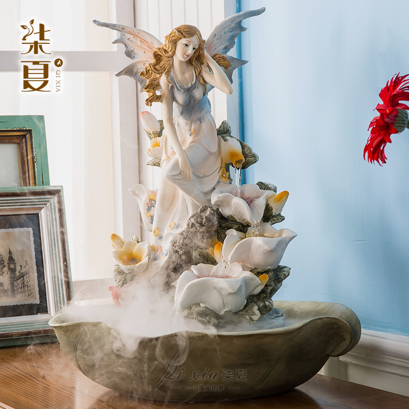 欧式创意流水喷泉客厅电视柜加湿器摆件大型落地家居乔迁新居饰品
