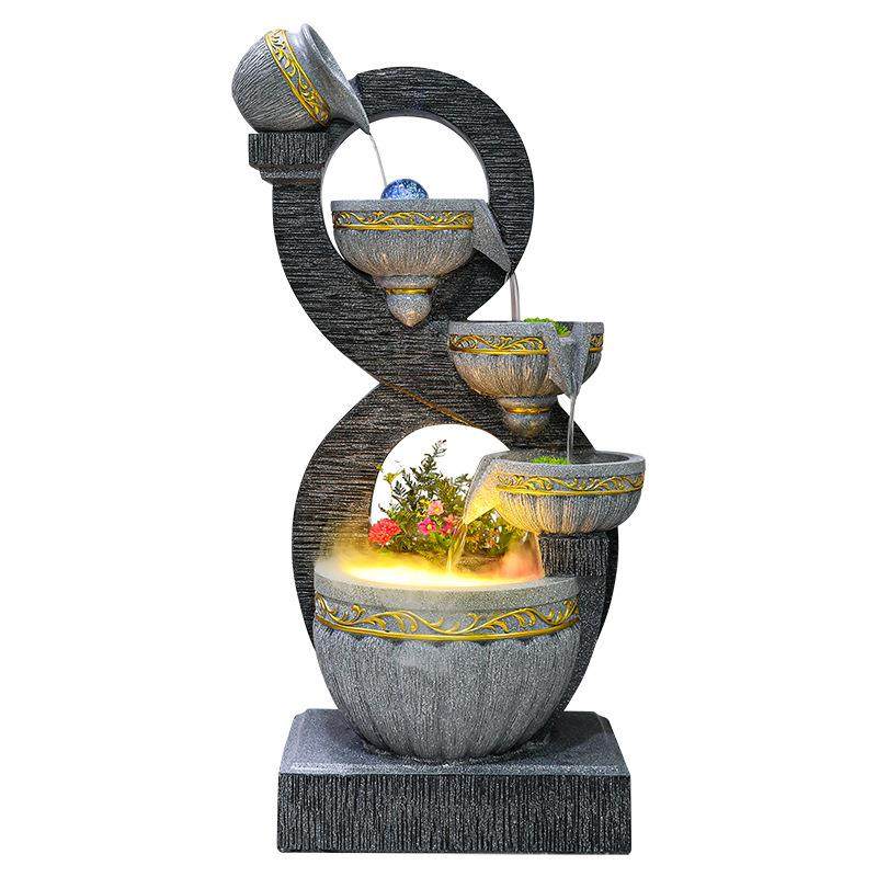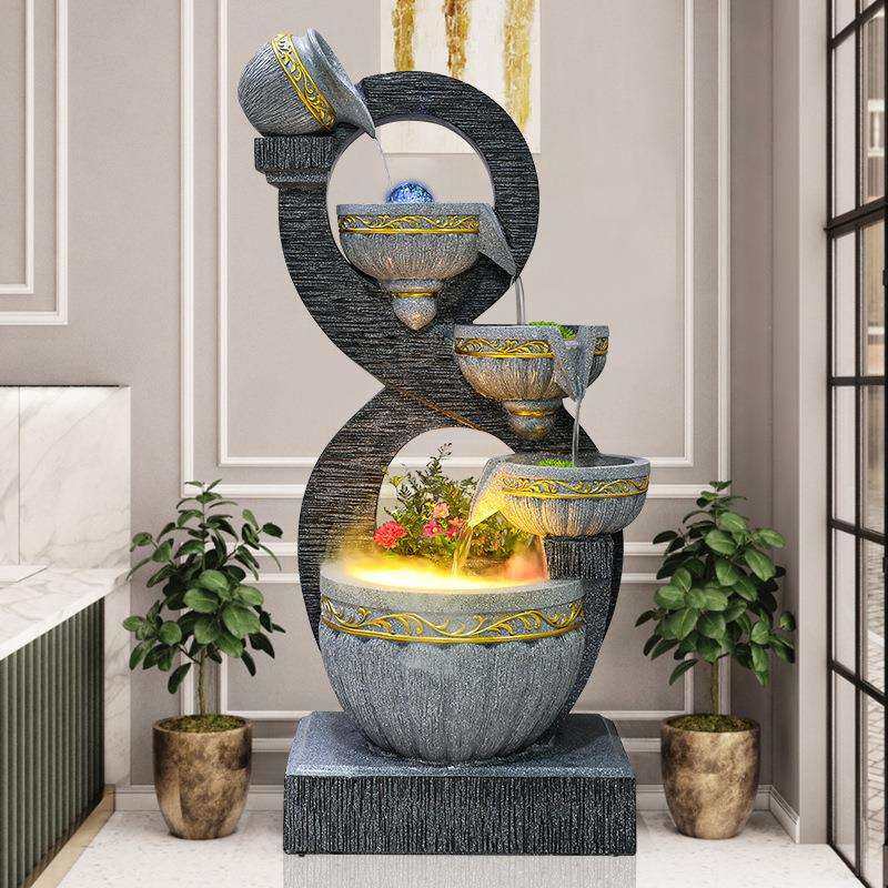 欧式别墅花园庭院阳台装饰布置会所客厅招财家居落地流水景观摆件