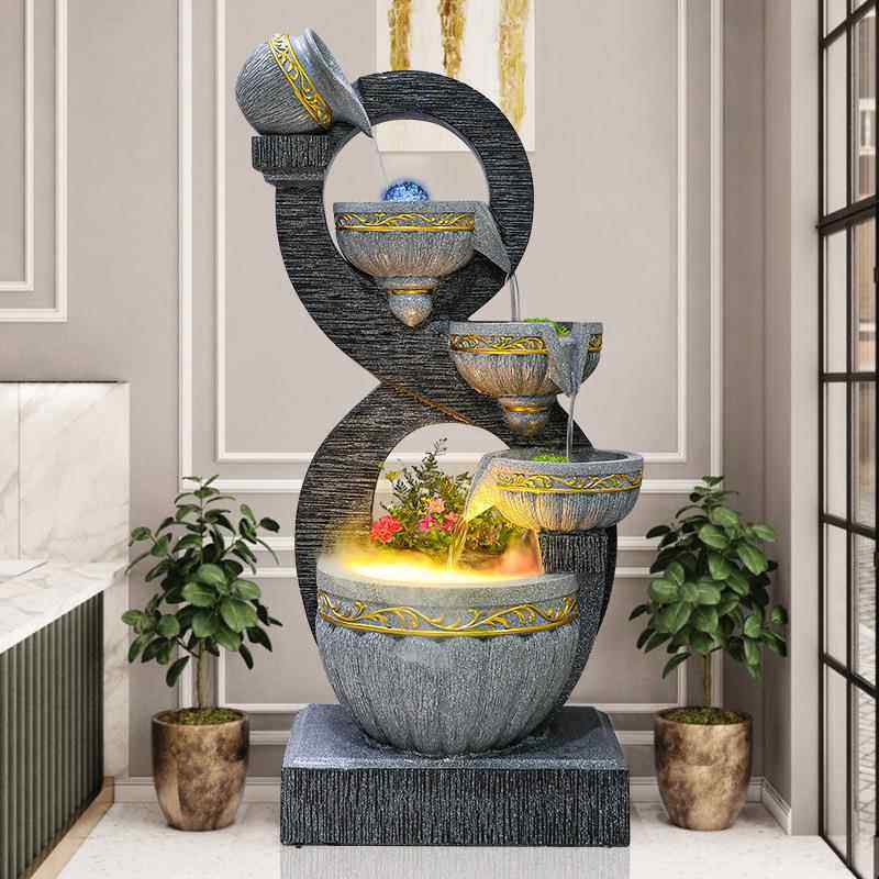 流水喷泉欧式摆件客厅落地大型家居装饰品摆设电视柜旁边创意轻奢
