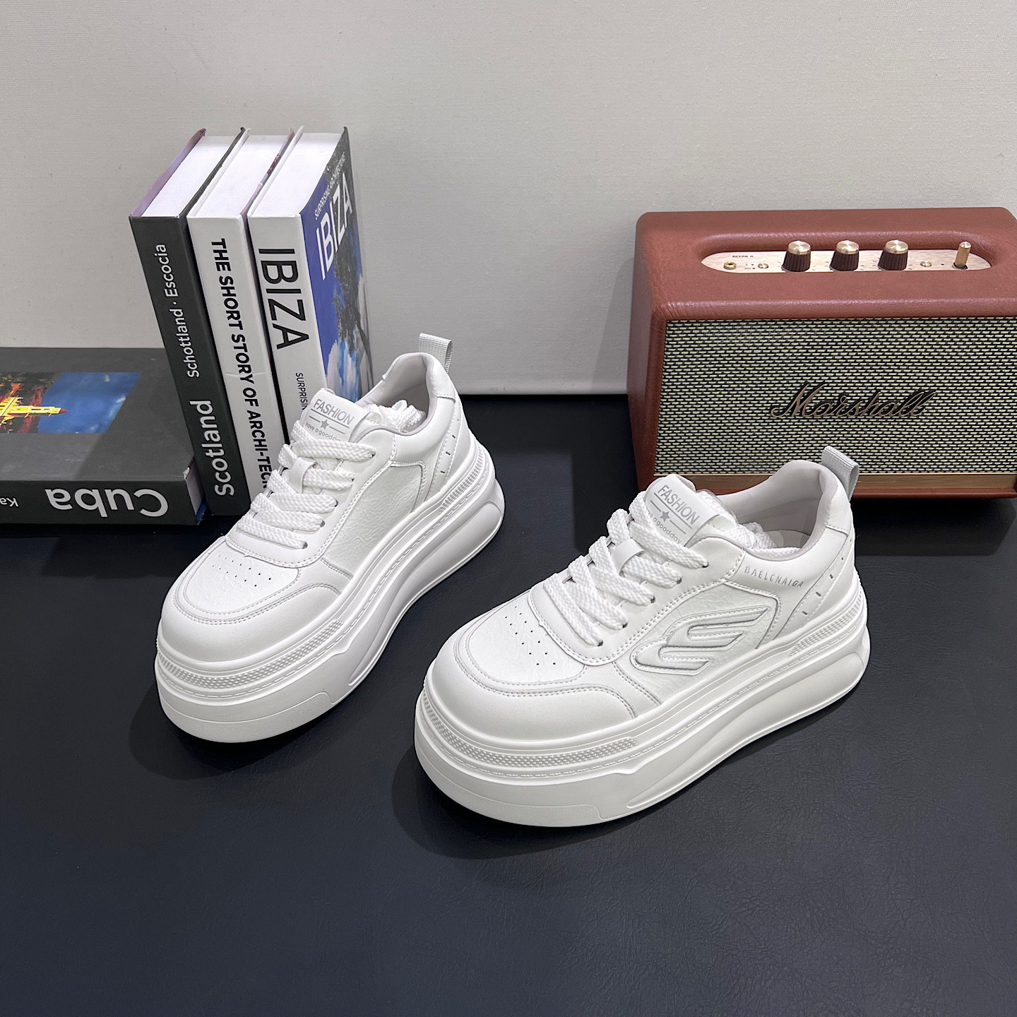 - 小白鞋女真皮 厚底 系带