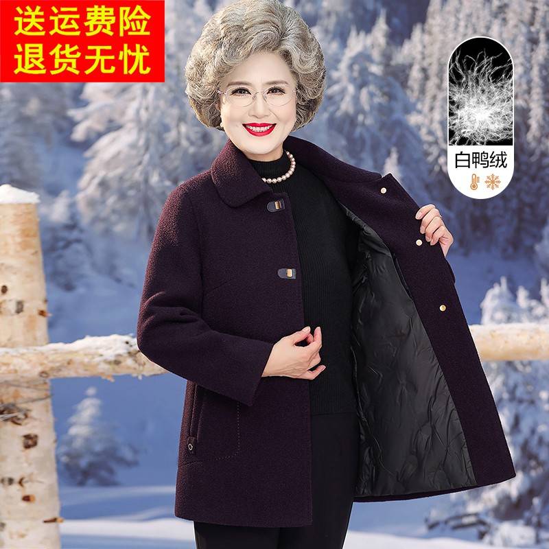 正品中老年人羽绒服女妈妈冬季保暖洋气老人外套奶奶冬装鸭绒上衣