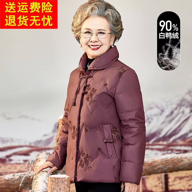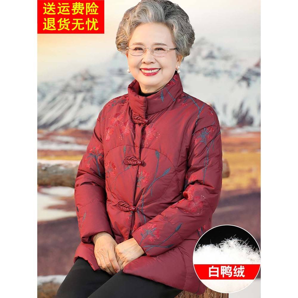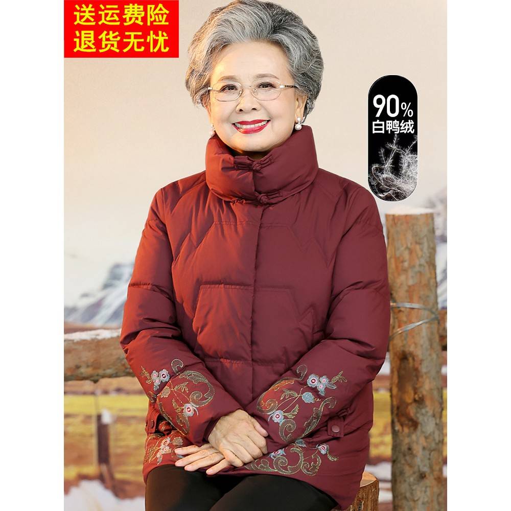 老年人羽绒服女70岁80奶奶加厚保暖白鸭绒妈妈冬装棉袄外套老太太
