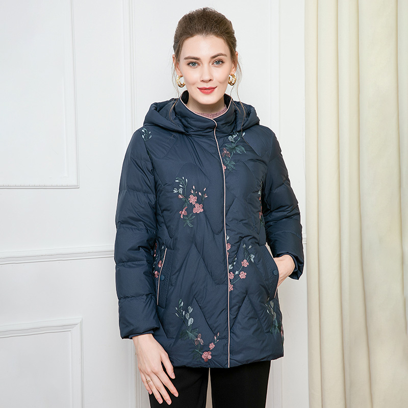 雪中飞中老年人羽绒服女国风设计连帽中长款妈妈冬季大码保暖外套