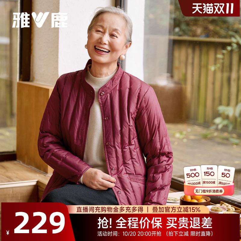 雅鹿奶奶冬季轻薄羽绒服老年人女士内搭2025新款短款妈妈保暖外套