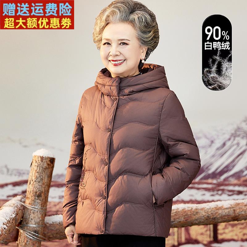 老年人羽绒服女妈妈加厚冬季白鸭绒外套奶奶冬装中老年棉袄老太太