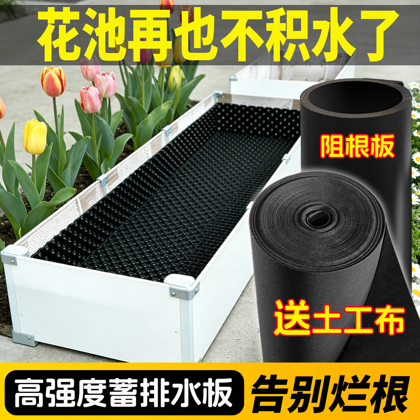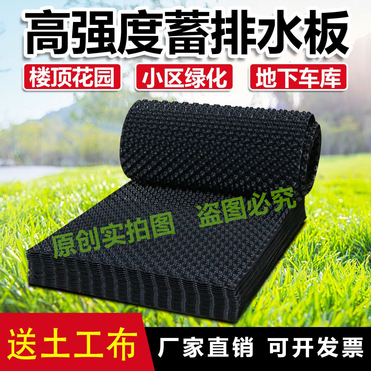 蓄排水板楼顶绿化滤水板阻根板围树板土工布屋顶花园种菜疏水控根