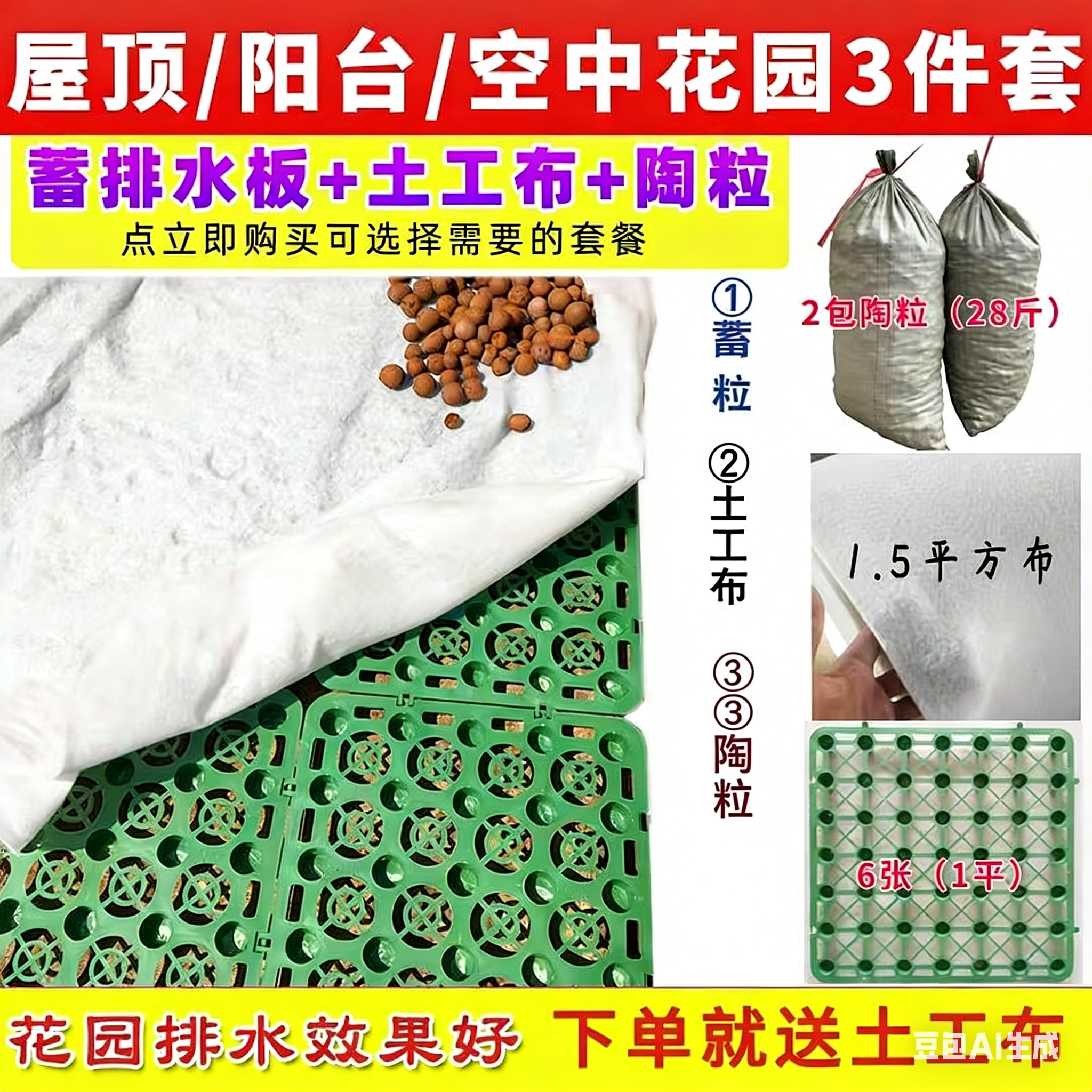 花箱垫底专用透水土工布陶粒蓄排水板滤水组合无纺布种植泡沫材料
