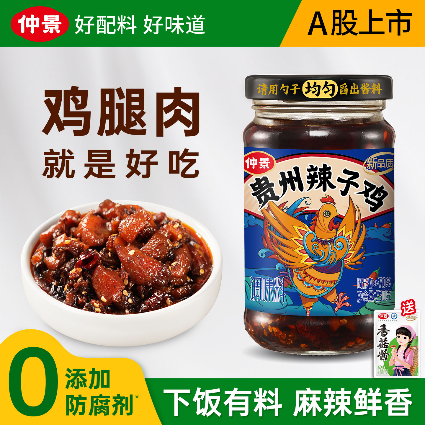 【0添加防腐剂】仲景贵州辣子鸡风味鸡油辣椒拌饭拌面酱夹馍卷饼