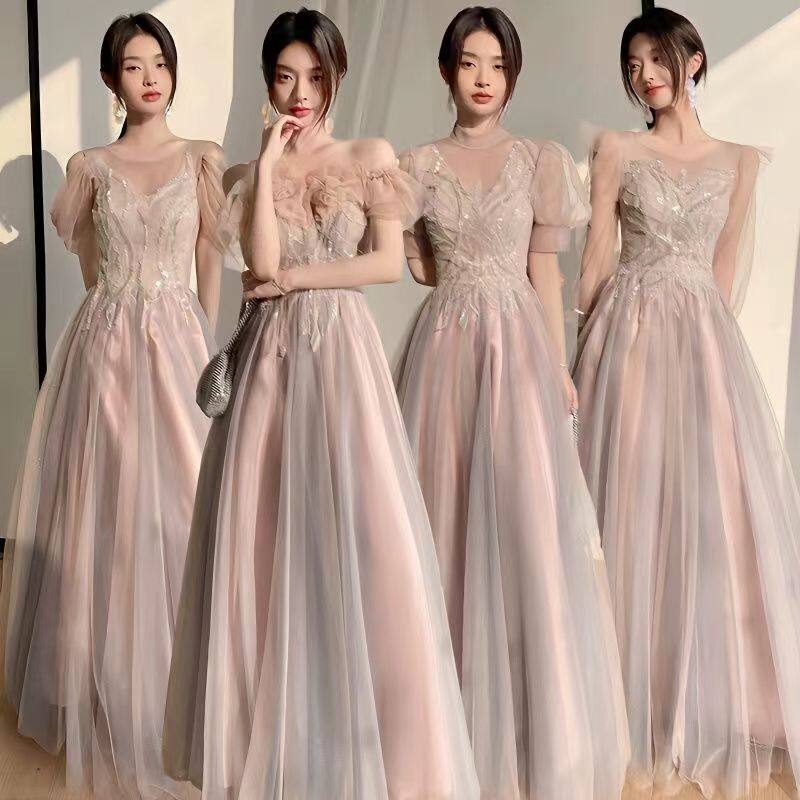 2025新款粉色伴娘礼服女夏季仙气长款显瘦姐妹团晚礼服裙小众高级