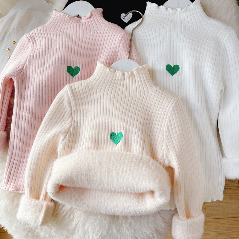 女童一体绒毛衣冬季新款儿童毛衣半高领打底加绒女宝加厚内搭上衣