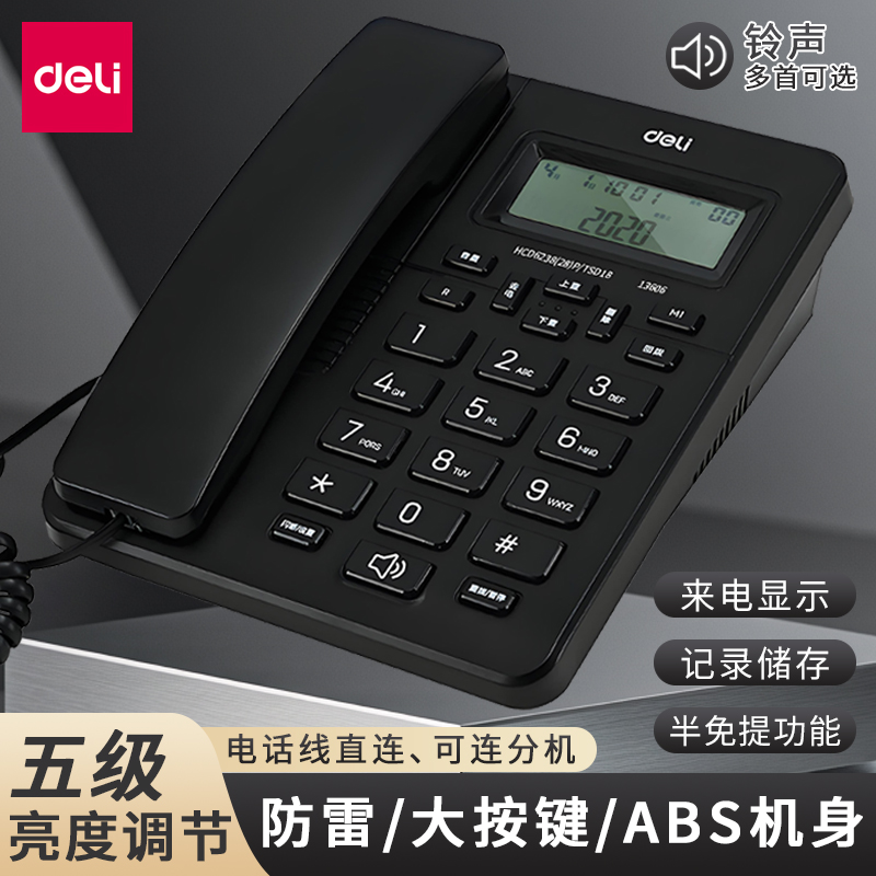得力有线座式固定电话机座机家用办公室用单机LCD数显屏幕来电显示ABS机身大按键商务电话机13606