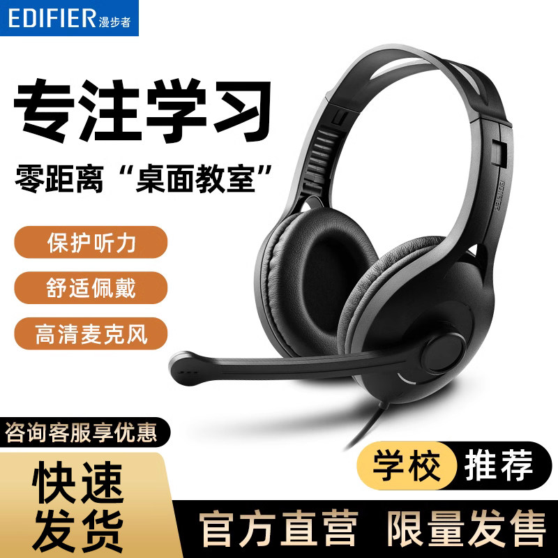 漫步者 K815台式电脑语音网课学习听课笔记本耳机头戴式电竞游戏耳麦带话筒麦克风有线专用USB接口