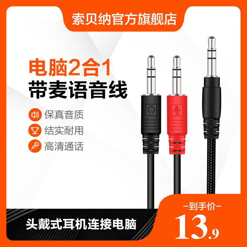 无线头戴式电脑耳机带麦克风语音通话游戏电竞耳麦连接线台式主机笔记本USB转3.5mm音频线适用索尼漫步者solo