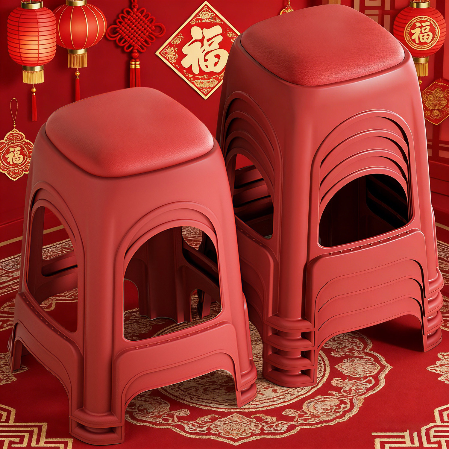 【办年货】塑料凳子加厚皮革软包海绵凳面客厅家用成人高凳红凳子
