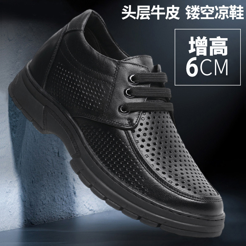 夏季内增高凉鞋男士增高鞋6cm商务休闲皮鞋镂空透气洞洞鞋舒适