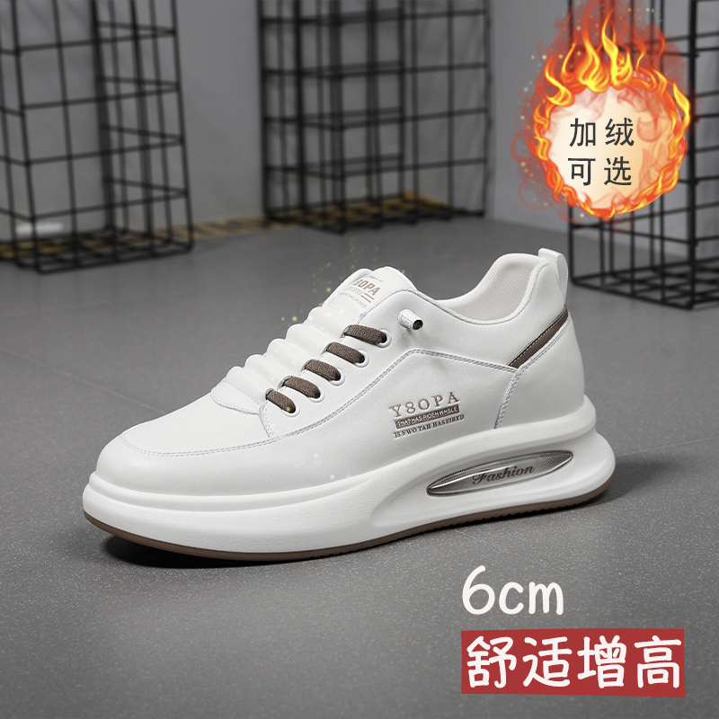 高哥内增高男鞋2025新款冬季透气白鞋 运动休闲板鞋男士增高鞋6cm