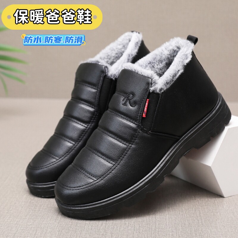 冬季新款老北京男棉鞋加绒保暖中老年爸爸鞋防水防滑休闲老人棉靴