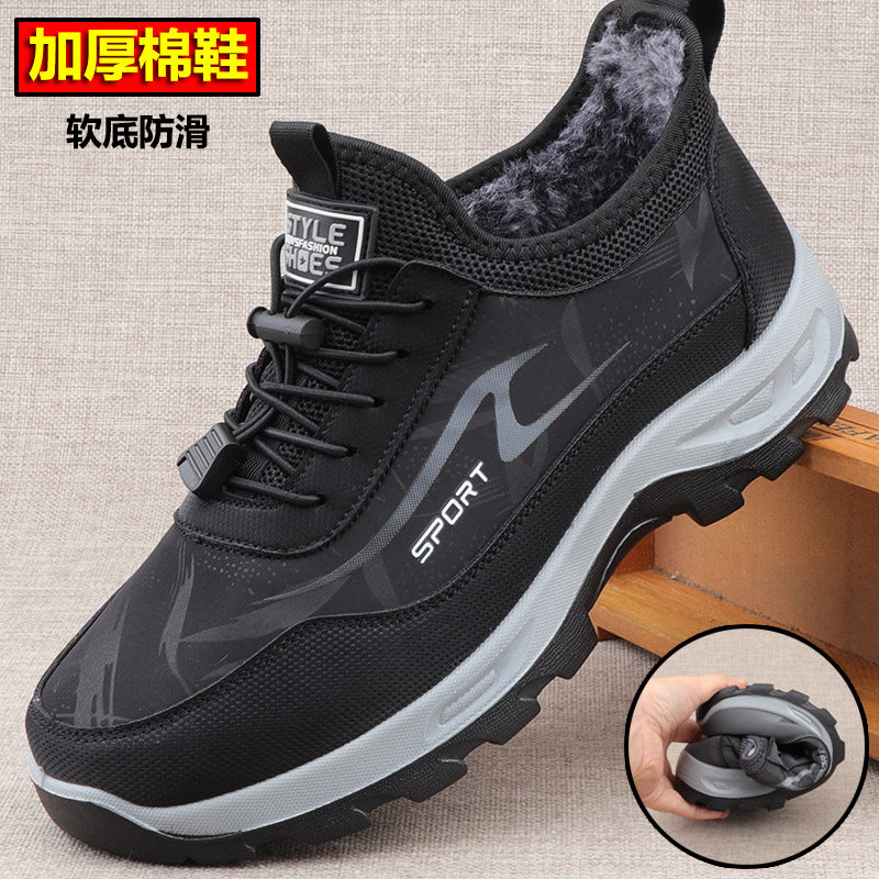 25冬季老北京男棉鞋加绒保暖加肥宽脚掌休闲运动中老年爸爸棉鞋轻