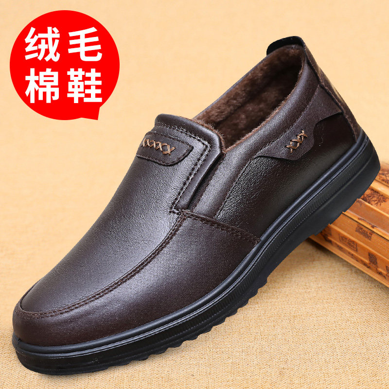 秋冬老北京男棉鞋软底防滑中老年爸爸加绒鞋一脚蹬二棉保暖工作鞋