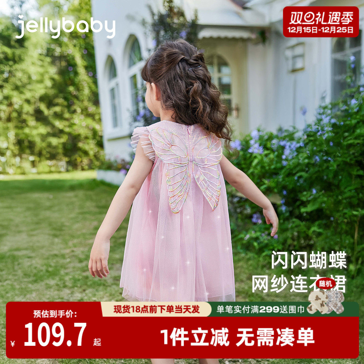 迷你巴拉巴拉女童A字连衣裙夏季宝宝飘逸网纱小飞袖甜美公主裙子