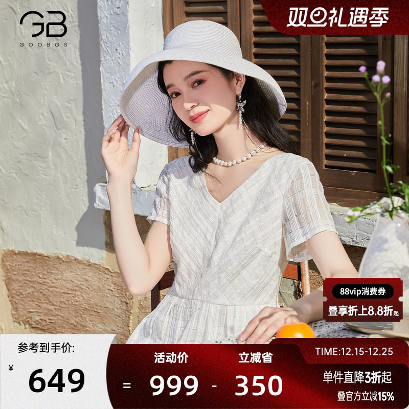 谷邦法式复古度假风连衣裙女2025秋季新款气质显瘦A字网纱长裙子