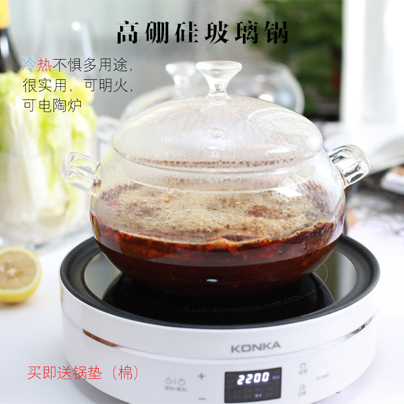 耐高温电陶炉玻璃锅明火直烧家用双耳锅电磁炉汤锅透明焖烧锅炖锅