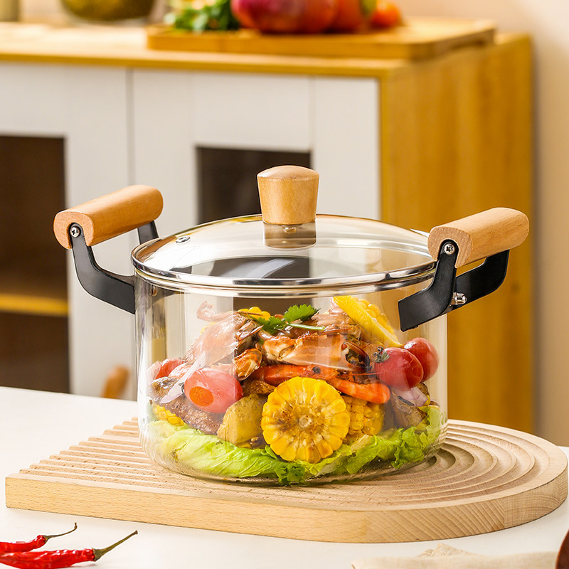 家用高硼硅玻璃煮面锅防爆可明火烧锅透明煮茶壶电陶炉专用双耳锅